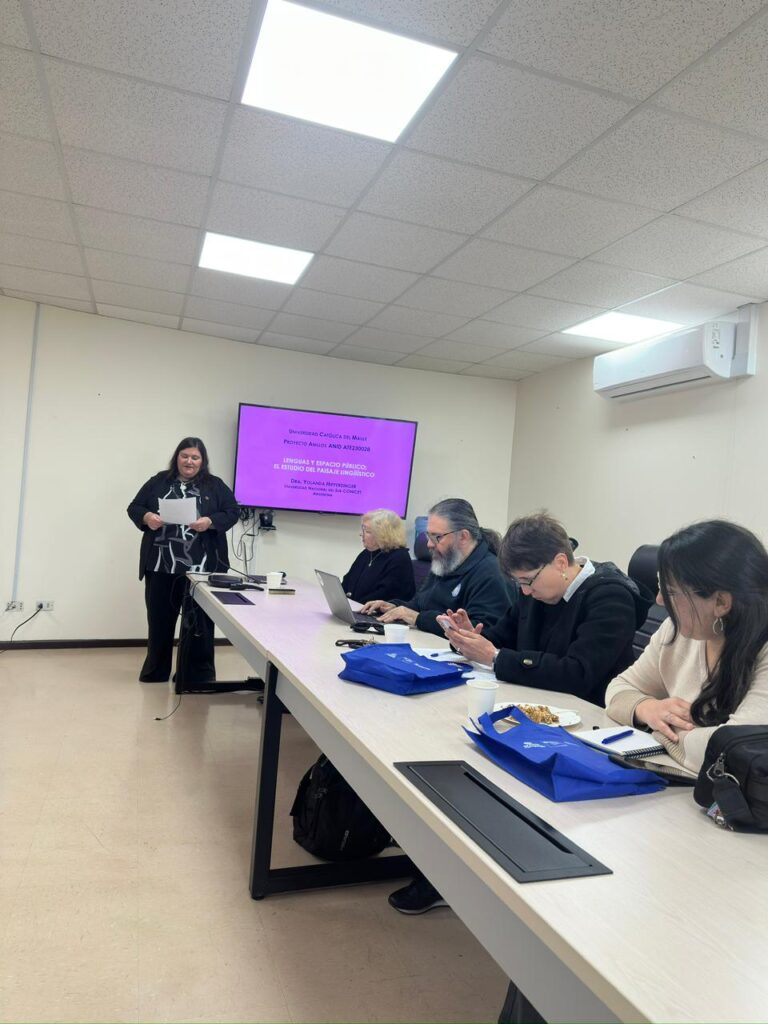 Durante su estadía, la Dra. Hipperdinger dictó la conferencia “Paisaje lingüístico rural: lenguaje, identidad y territorio”, compartiendo los avances de sus investigaciones sobre la exhibición del lenguaje en el espacio público —un campo que dialoga profundamente con los ejes de trabajo del Proyecto Anillos, en su dimensión eco-lingüística y socio-ambiental.
